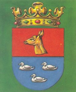 Het nieuwe wapen kreeg als omschrijving: “doorsneden: I in keel een reekop en -hals van goud II in azuur drie zwemmende woerden van zilver, gebekt van goud. Het schild gedekt door een gouden kroon van drie bladeren en twee parels”.